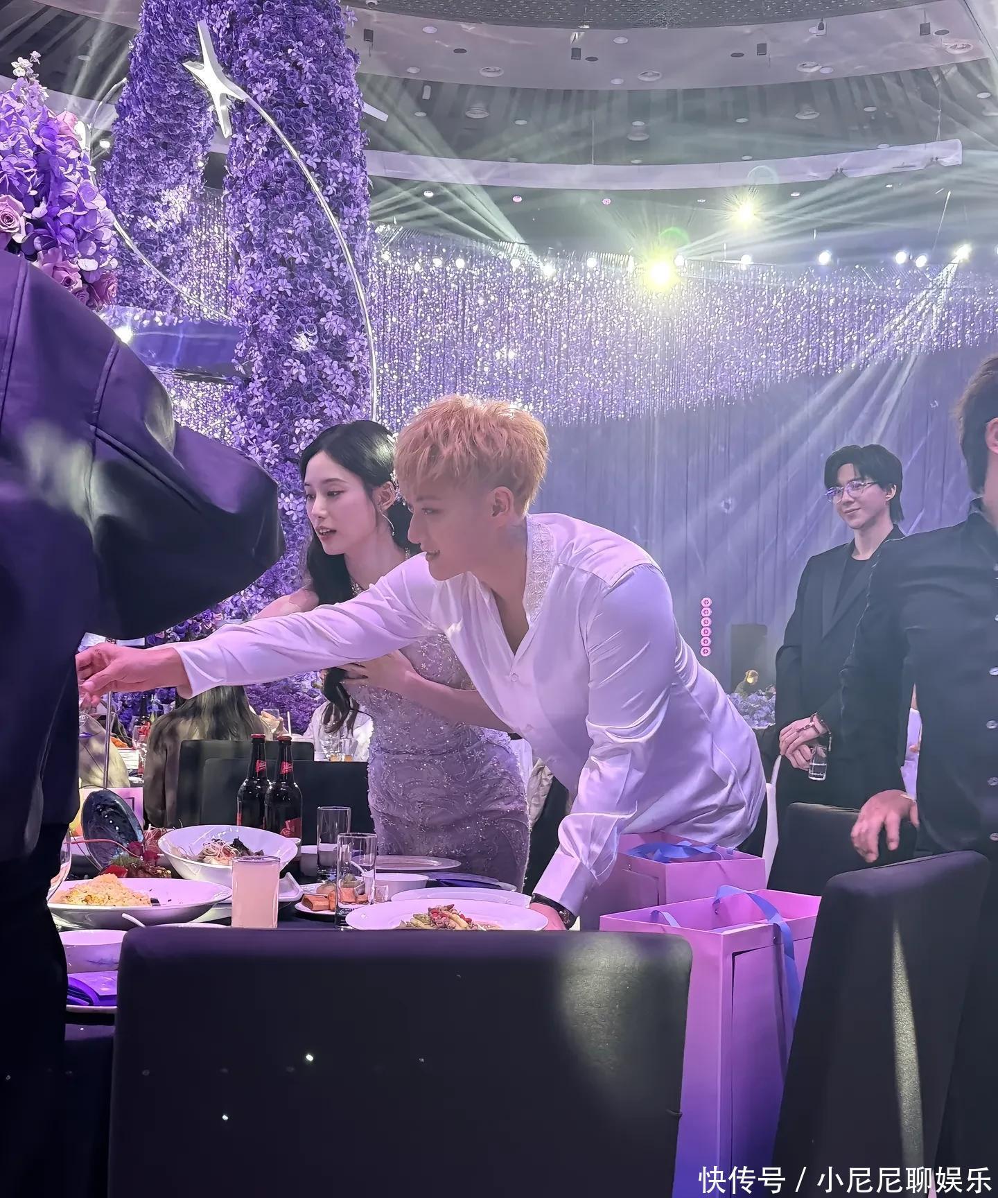 黄子韬的婚礼没安排伴郎环节,因为本来就只想办场亲近的私人聚会。但刘宇宁在婚礼现场全程陪同一对新人,敬酒环节攥着分酒器紧随新人左右,斟酒、挡酒、接话茬一气呵成,活脱脱一个“编外伴郎”,连黄子韬都打趣“早该让你当伴郎”。